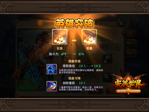技能升级在玩家英雄的等级提升之后,就可以使用元神对于技能进行升级,可以提升英雄一些战斗力,主要还是增加技能的伤害。