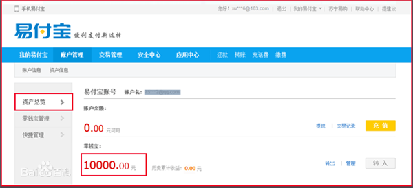 4)转入成功后可返回【账户管理-资产总览】中查看零钱宝的余额。