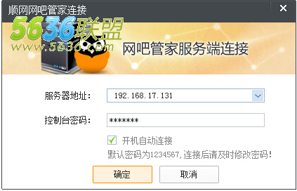 启动网吧管家控制台,输入网吧管家服务器的IP地址和控制台密码,连接服务器。控制台默认密码为1234567,连接后可在控制台下拉菜单中修改。用户可以选择“开机时自动连接”,这样就不需要每次开机都输入了。如用户以后想取消这个选择,可以在控制台右上角下拉菜单里的“登录设置”里修改。