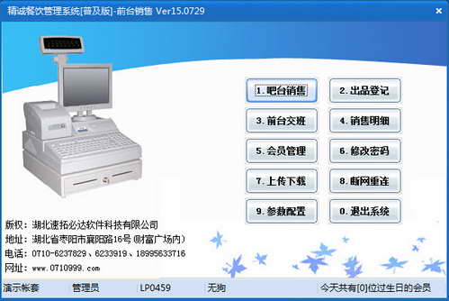 精诚餐饮管理系统,包含餐饮行业的绝大部分常用功能:进货、退货、领用、退库、报损、盘点、前台收银、会员管理、财务管理、查询统计等。