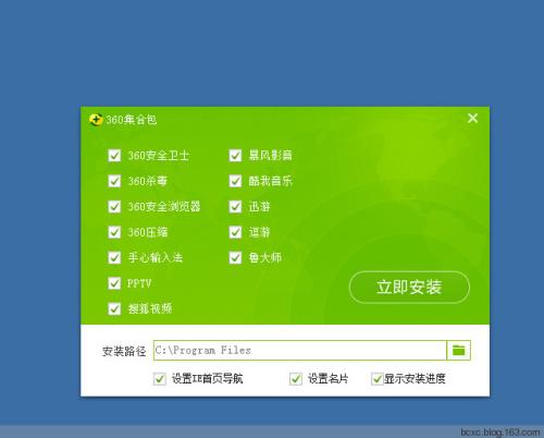 360一键装机的推出很好的解决了问题,可以批量下载安装多款常用软件,而且在下载软件前就可以选择各种软件附带的安装选项,比如是否安装这些软件捆绑的插件、是否设置为开机启动,并能够一次性选好软件的安装路径,省掉了逐个设置的麻烦。