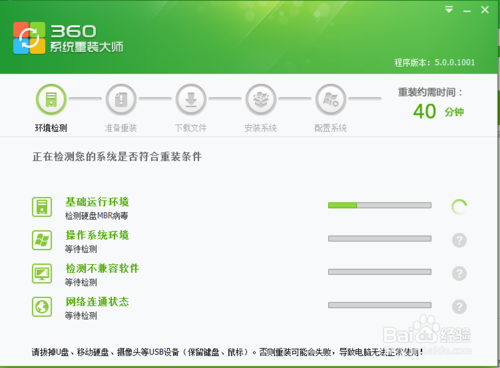 2、在这个窗口,执行环境检测操作,看是否符合重装条件;