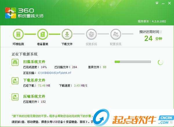 3、检测完毕之后,提示用户备份好C盘所有数据,接着进行xp系统差异文件下载过程;