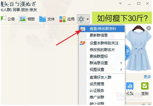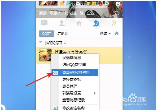 打开qq群列表,在你创建的群上右击点“查看/修改群资料”。或者直接双击打开群聊天窗口,在窗口右上方点击齿轮图标,选择下拉菜单第一项。