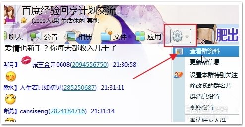 首先,我们来了解下,查看QQ群的等级积分在哪里查看,打开QQ群,点击“群设置”--点击“查看群资料”。