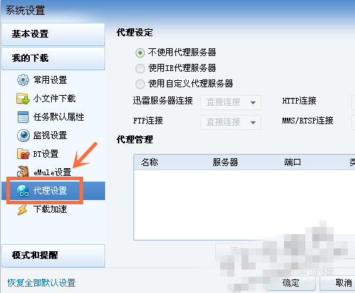 2、在打开的系统设置中我们找到左边的我的下载,然后选择代理设置。在右边将会切换到指定的内容。