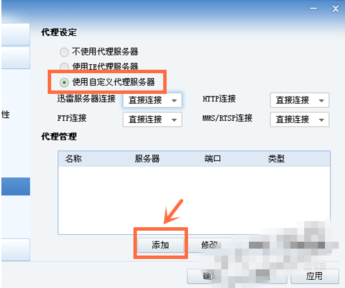 3、如果我们在Ie浏览器已经设置过代理相关的内容的话,可以直接选择使用ie代理服务器,如果没有的话,我们选择使用自定义代理服务器,然后单击下面的添加按钮。
