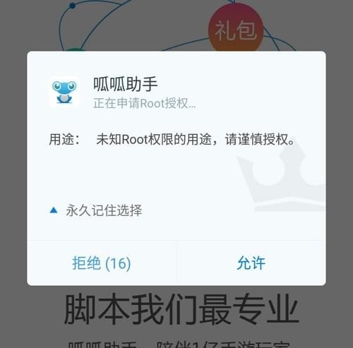 3、下载好之后打开呱呱助手会提示需要root权限!点击允许即可!