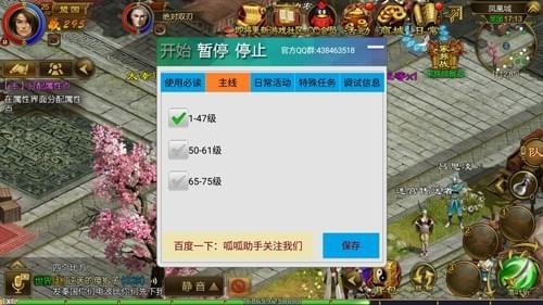 7.当你脚本运行过程中,如果需要手动参与其他活动什么的,务必记得打开呱呱助手悬浮框,点击暂停止,使得脚本暂停运行,等你活动做完了可以选择开始就继续刚刚的脚本运行。