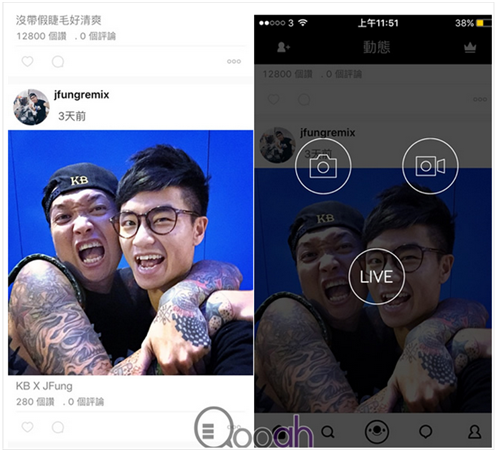 想要成功,最为简单直接的,当然是模仿一些成功的产品。这个「17」就完美的照抄了Instagram的介面以及用法,再加上对方没有的杀手功能「Live 直播」,以及加入农场内容网站的「浏览分成」网赚元素以病毒式的内容散播方式,令到该程式一时成为佳话。