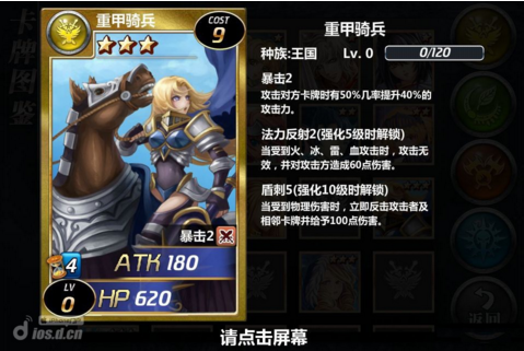 《魔卡幻想》中每张卡牌除了有最基础的血量和攻击外,每张卡都会有些其他的数值,这里我就拿重甲骑士这张卡来详细说明一下他们都是什么东东。