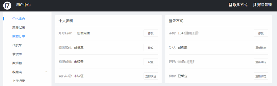 3.随后系统自动进入“个人信息”页面,需补充完整个人资料。注意:旺旺需要直接绑定。