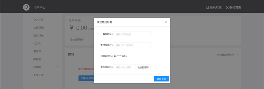 为了保证您的资金账户安全,您在17网申请提现至支付宝,需要绑定您的支付宝账户,并验证您支付宝账户的真实姓名。若姓名验证不通过,系统将无法为您进行提现操作,请务必认真填写。