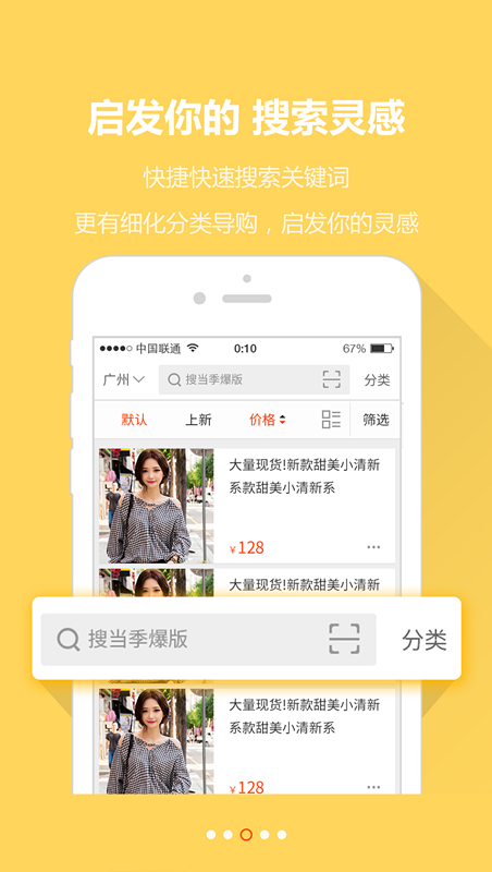 4、搜款式 -- 海量一手低价货源, 让用户可以随时挑选自己心仪的款式。