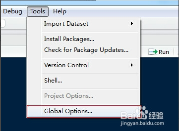 接着在Tools工具下拉菜单中,点击打开Global Options(全局选项),如图所示
