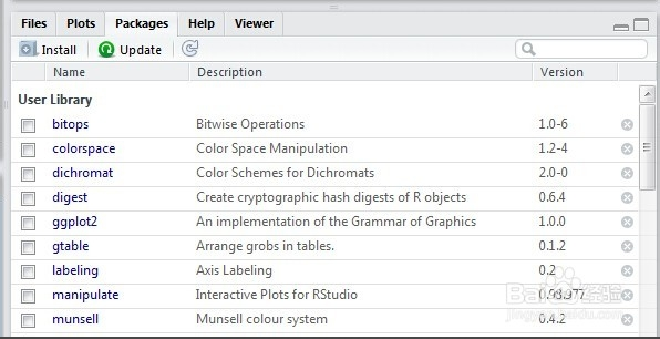 还可以通过右下角的packages安装R包和查阅每个包的介绍。