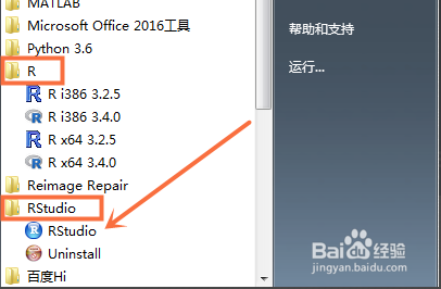 首先点击打开电脑上安装的RStudio软件(注:RStudio是在R语言软件之上才能使用的),如图所示
