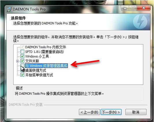 5、注意:接下来的一步中,我们要将“与Windows资源管理器集成”选项取消,切记切记!