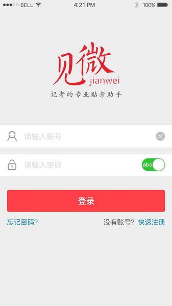 见微app是媒体记者的一款发稿助手。支持一线记者利用各类手机在线传输视频、图片、文字至终端平台,终端审稿人在线实时可完成审核、修改,发布后,再将稿件发至不同前端,实现一次采集多次分发的高效传输,提高效率。【软件特色】
