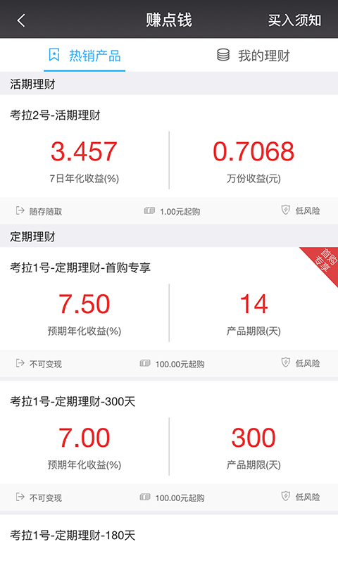 1.“赚点钱”新增理财产品;