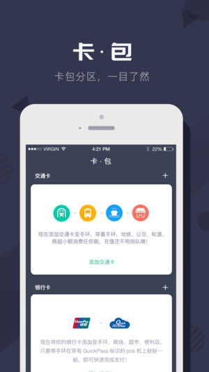 内置北京市政交通一卡通、中银通电子现金卡;任意添加多种空发卡,容量多达20张;各地公交地铁商超全面覆盖,尽情享受各种卡惠福利。