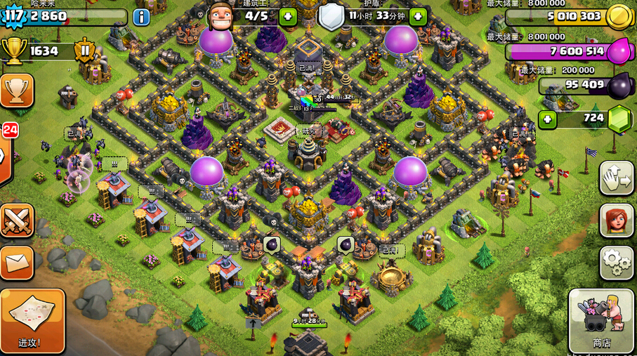 用加农炮、弓箭塔、迫击炮、炸弹、陷阱和城墙守卫您的村庄