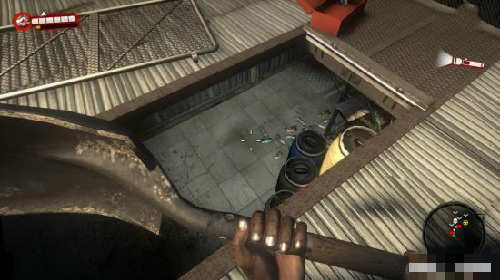 和目标人物对话后从后门出去,爬梯子上屋顶,从屋顶进入车库,里面有个小BOSS和普通僵尸,