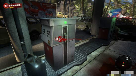 杀光僵尸后开启车库的大门,然后打开旁边的电源,在桌子上拿个空油桶去加油机那里,