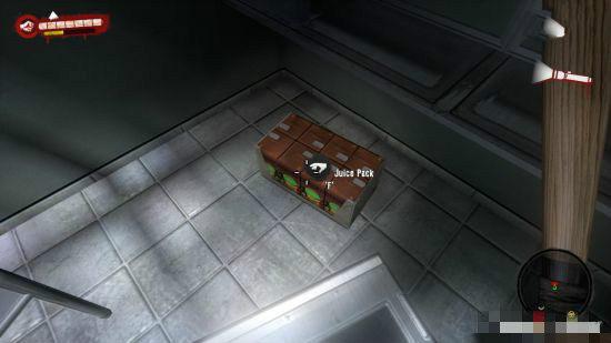 从梯子爬到便利店房顶,右边的房顶是玻璃的,打碎后进入店里,先打开店门,然后拿一箱果汁放到车上,