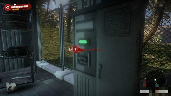 上楼梯打开电子锁的门进去,杀光僵尸后打开警卫塔的卷帘门,里面是一个三级的僵尸,