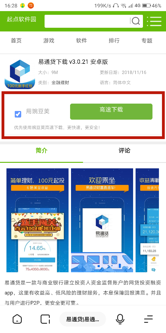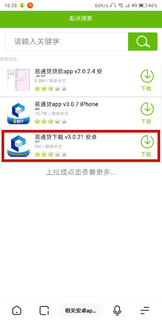 2.进入起点后,搜索易通贷,点击第三个进入下载页面