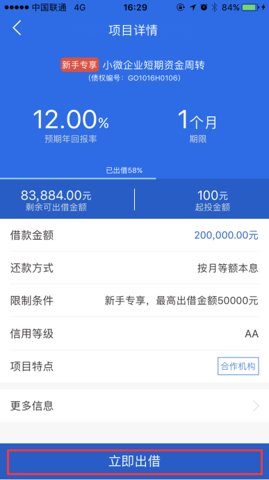 选定出借标的,点击“立即出借”让你的财富开始生息