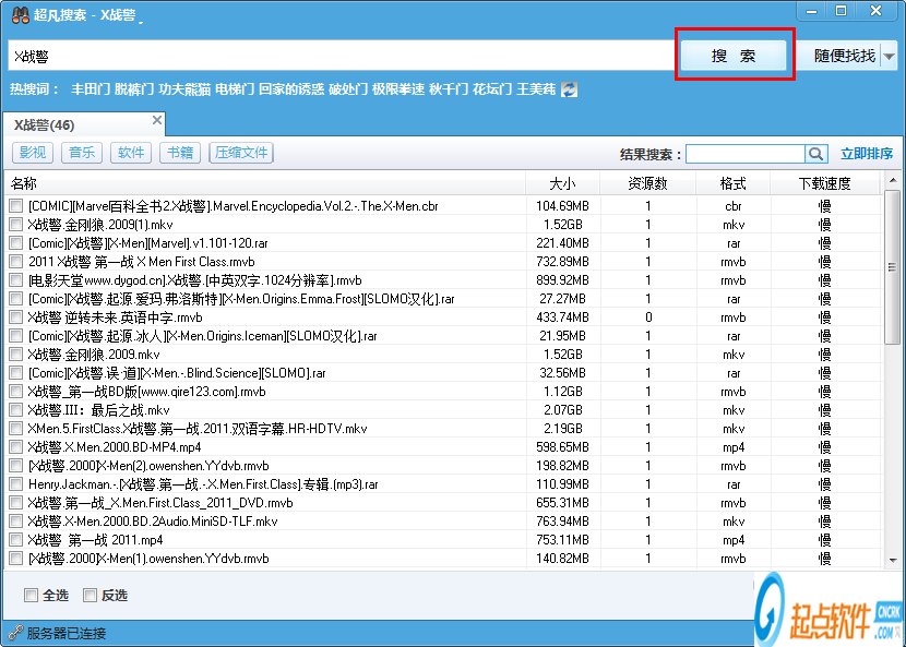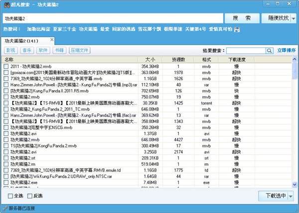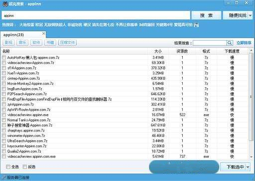 搜索出的资源列表可以按照文件大小、资源数量、格式、下载速度等几项自由排序,操作十分方便。