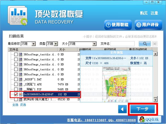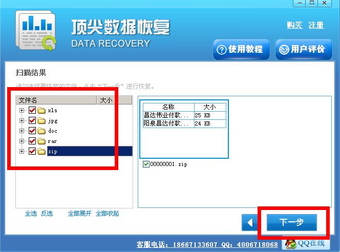 四,扫描结束后,选择要恢复的文件,点击下一步