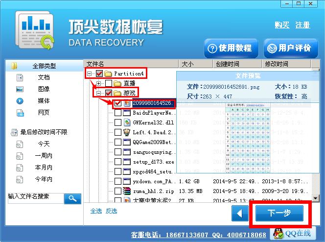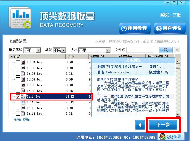 三,扫描结束后,选中要恢复的文件,点击下一步