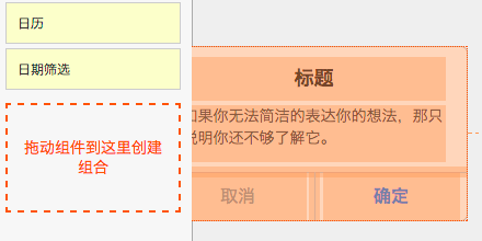 有两种方式创建自定义组合,可以点击组合面板上方的新建组合,或是直接从工作区拖动一组组件到组合面板.