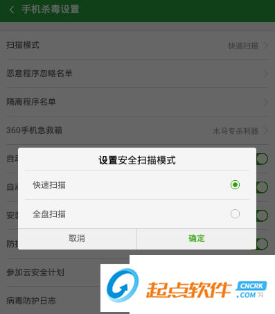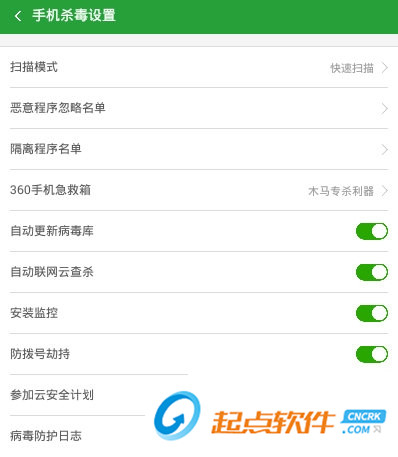 3、在360手机卫士的“手机杀毒设置”界面中,可以进行各种项目的设置;