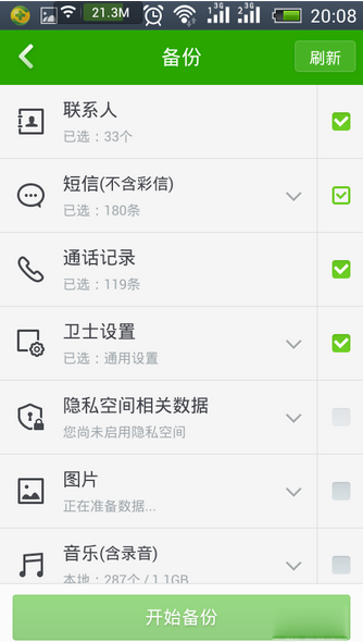 5.勾选需要备份的内容就可以了。