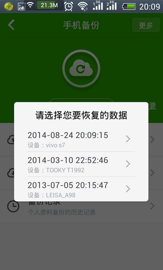 6.如果有一天需要恢复数据,点击恢复数据,选择恢复内容就可以了。