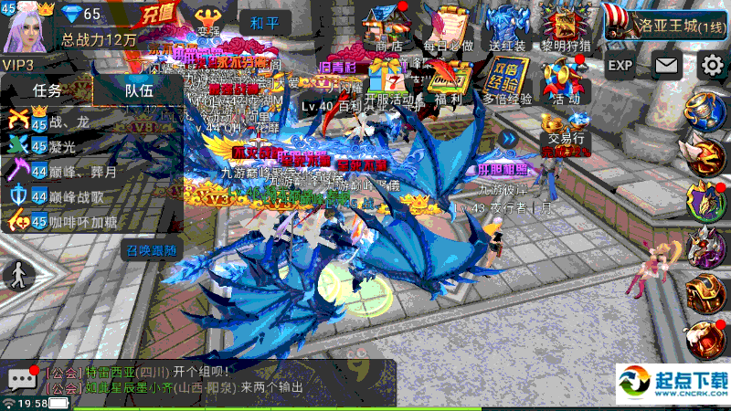 3坐骑~坐骑可以花一块钱弄个首冲。送蓝龙一只(一块钱在每日福利里面买个每日礼包)
