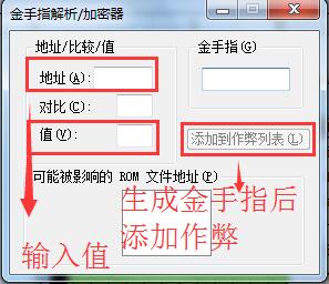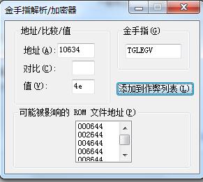 2.3.3 输入地址和数值后,模拟器会自动计算出金手指,点击添加到作弊列表后即可。