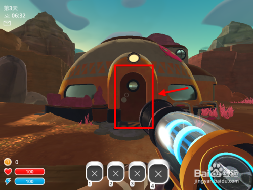 在牧场中间有一个圆顶建筑,那就是我们的家,可以到里面睡觉。
