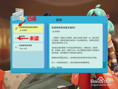 所有收取的信件都出现在这里,左侧点击信件名称右侧阅读详细内容。