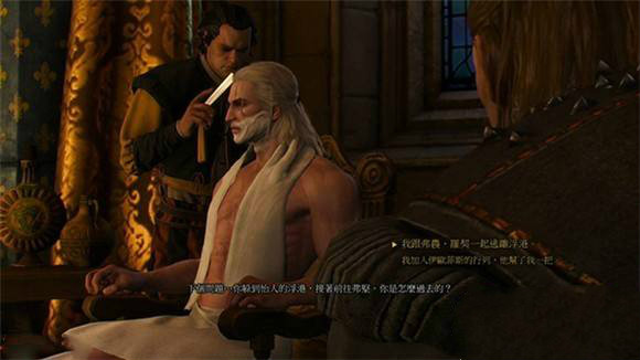 杰洛特的胡须会随着时间不停的生长, 如果你想要修个面或者换个发型, 可以前往诺维格瑞或者奥克森福特理个发, 需要注意的是, 理发师的品味可不怎么样.