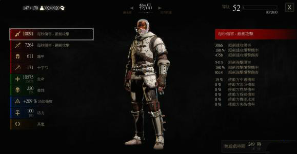 装备大致由弱到强分为普通(白色)-大师(蓝色)-魔法(金色)-遗物(暗金). 在游戏途中如果你经常探索地图, 会发现许多暗金武器, 可以省去你打造的麻烦. 注意, 绿色装备属于猎魔人套装, 猎魔人套装可以通过新的图纸不停进行升级, 所以请保留下你的绿色装备! 你的武器在使用之后会被磨损, 随着耐久度的下降伤害也会逐渐降低, 你可以通过武器旁边的红色铁锤标志来判断攻击力下降的具体数值. 剑和装备上的插孔可以插入符文石. 你可以通过找铁匠移除升级来回收装备, 或者通过拆解装备来回收符文石.