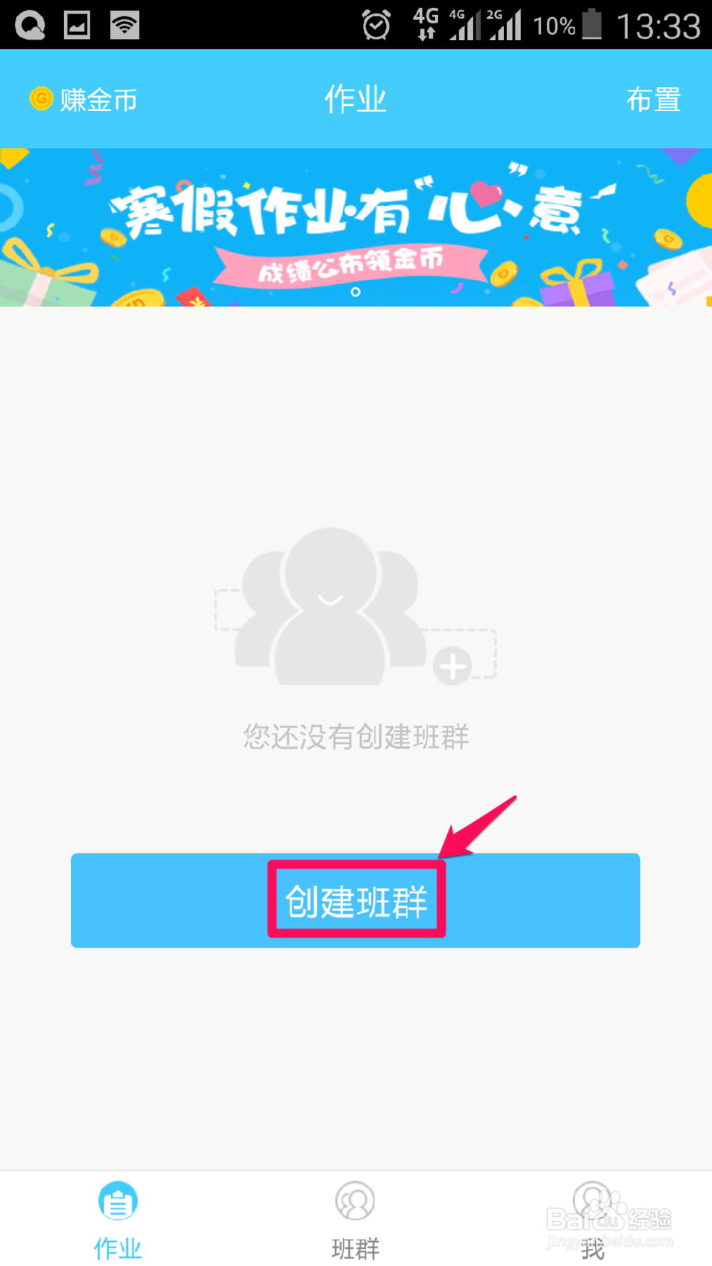 注册完成后,自动登录进入主界面,点击“创建班群”。如图所示: