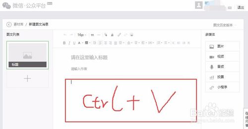 3、然后到微信公众平台中去粘贴刚刚复制的内容(Ctrl+V),这样就完成了从135到微信