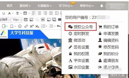 1、同步到微信平台。首先要授权公众号给135,有两个地方可以授权,看图