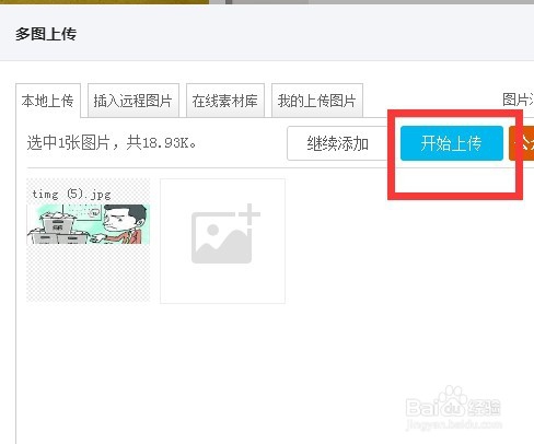 4、如果你还想再添加图片,就点击继续添加,添加完了之后,点击开始上传。