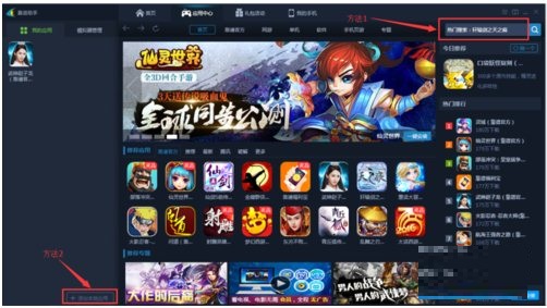 3、安装游戏,第一种方法是搜索游戏名然后下载,第二种方法是左下角的本地导入。